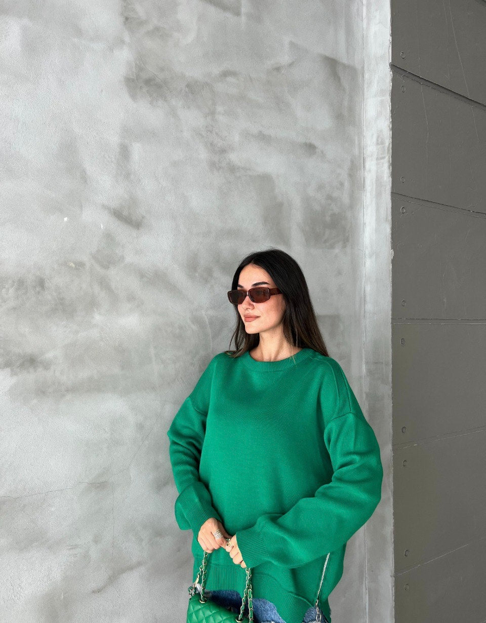 Green pullover with side zipper
