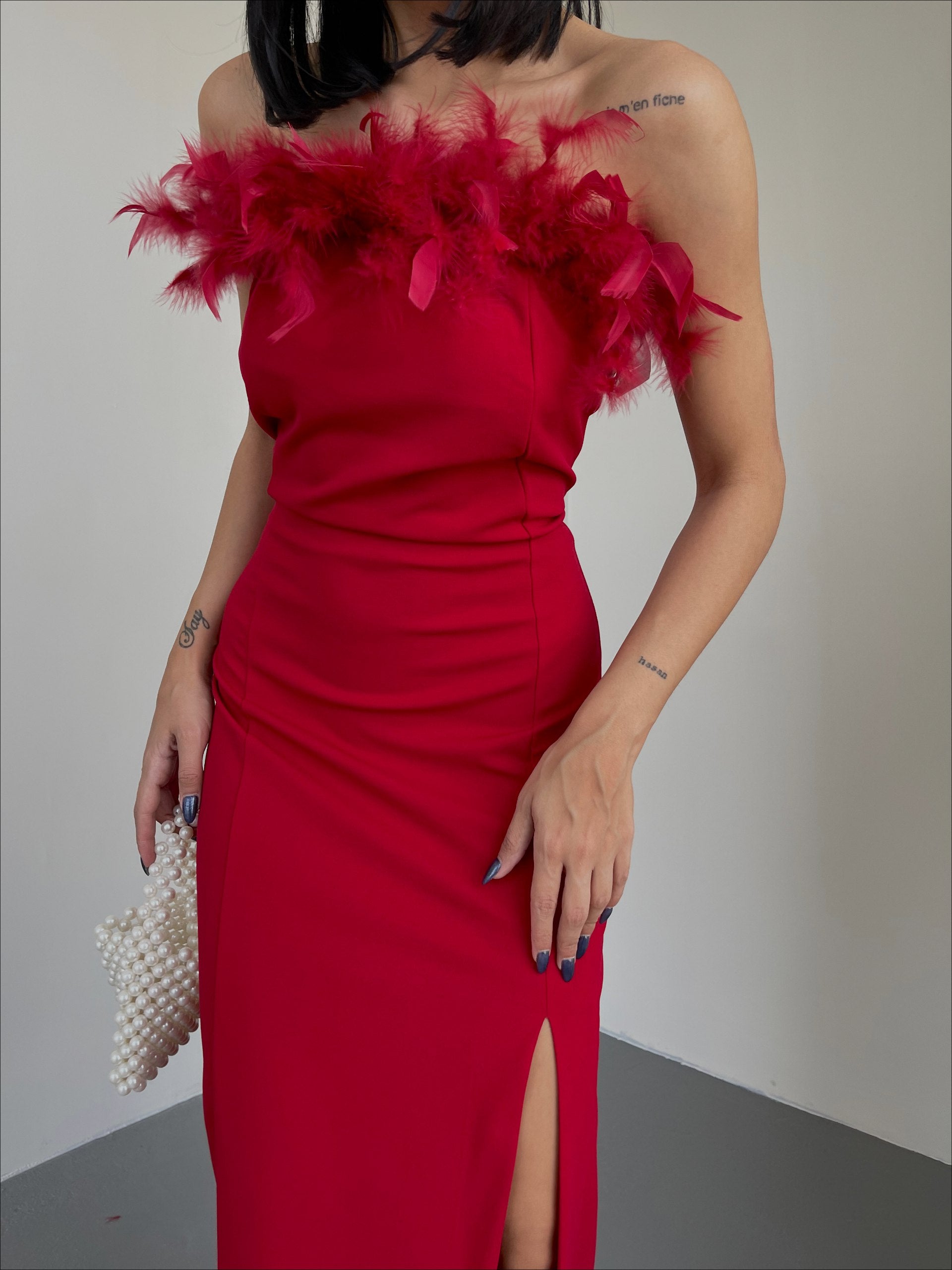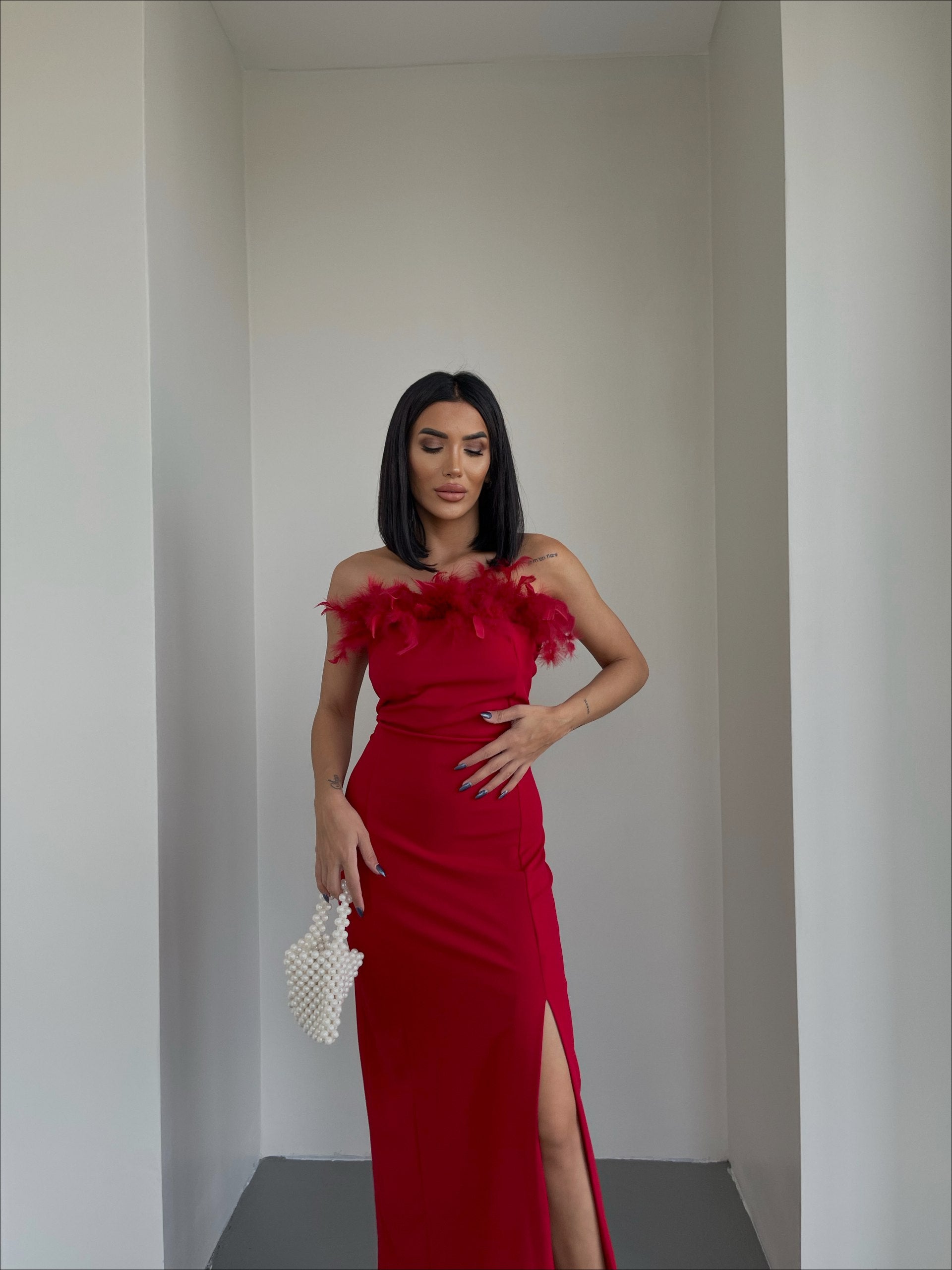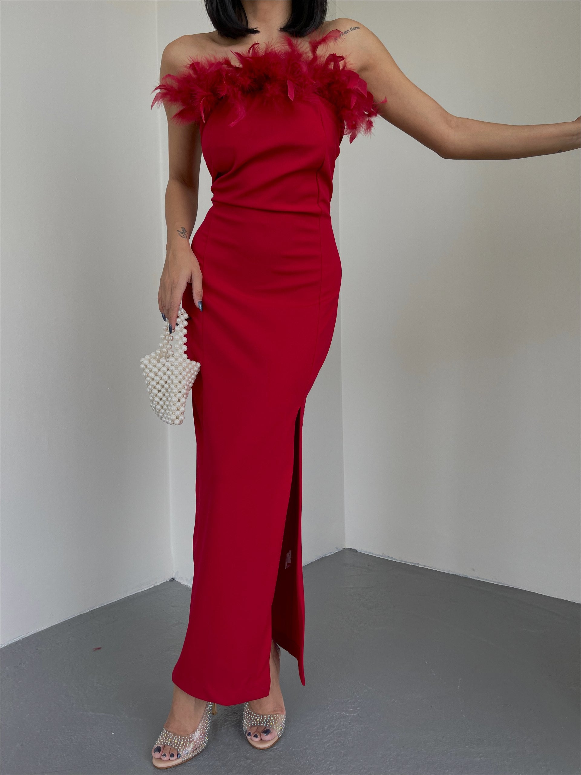 Red feather cup dress